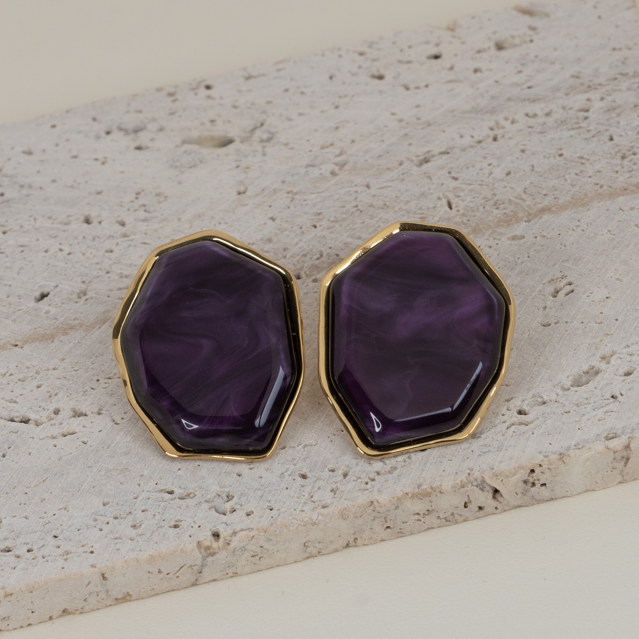 Adora Mauve Gold Ατσάλινα σκουλαρίκια με πέτρα σε μωβ απόχρωση