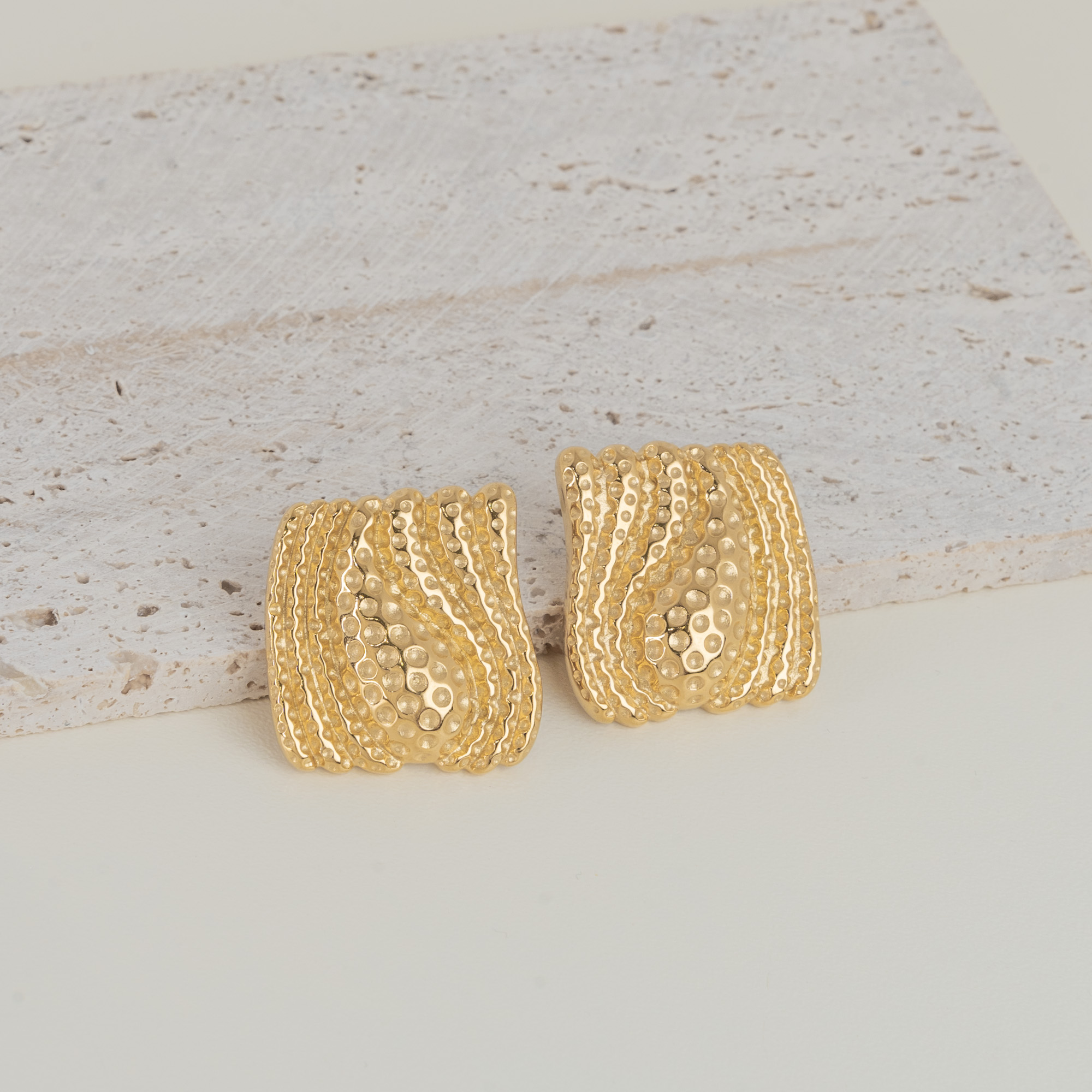 Aurea Gold ατσάλινα σκουλαρίκια με ανάγλυφο σχέδιο