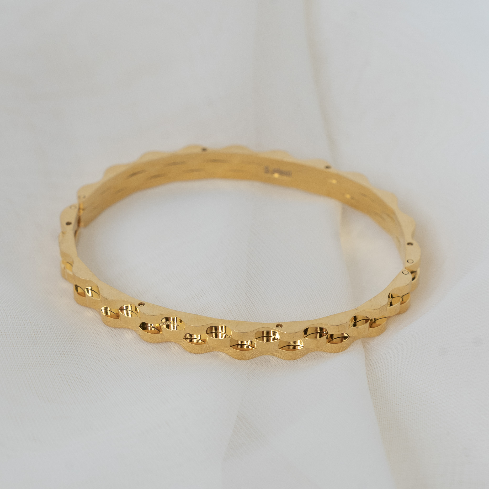 Avanti Gold Ατσάλινο Βραχιόλι Χειροπέδα με ανάγλυφη υφή “μπρασελέ”
