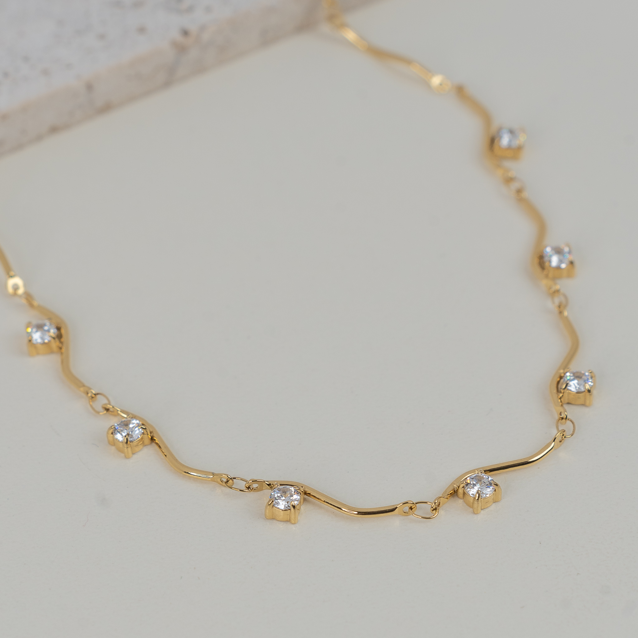 Brilliant Gold Κολιέ με ατσάλινη αλυσίδα και λευκά ζιργκόν