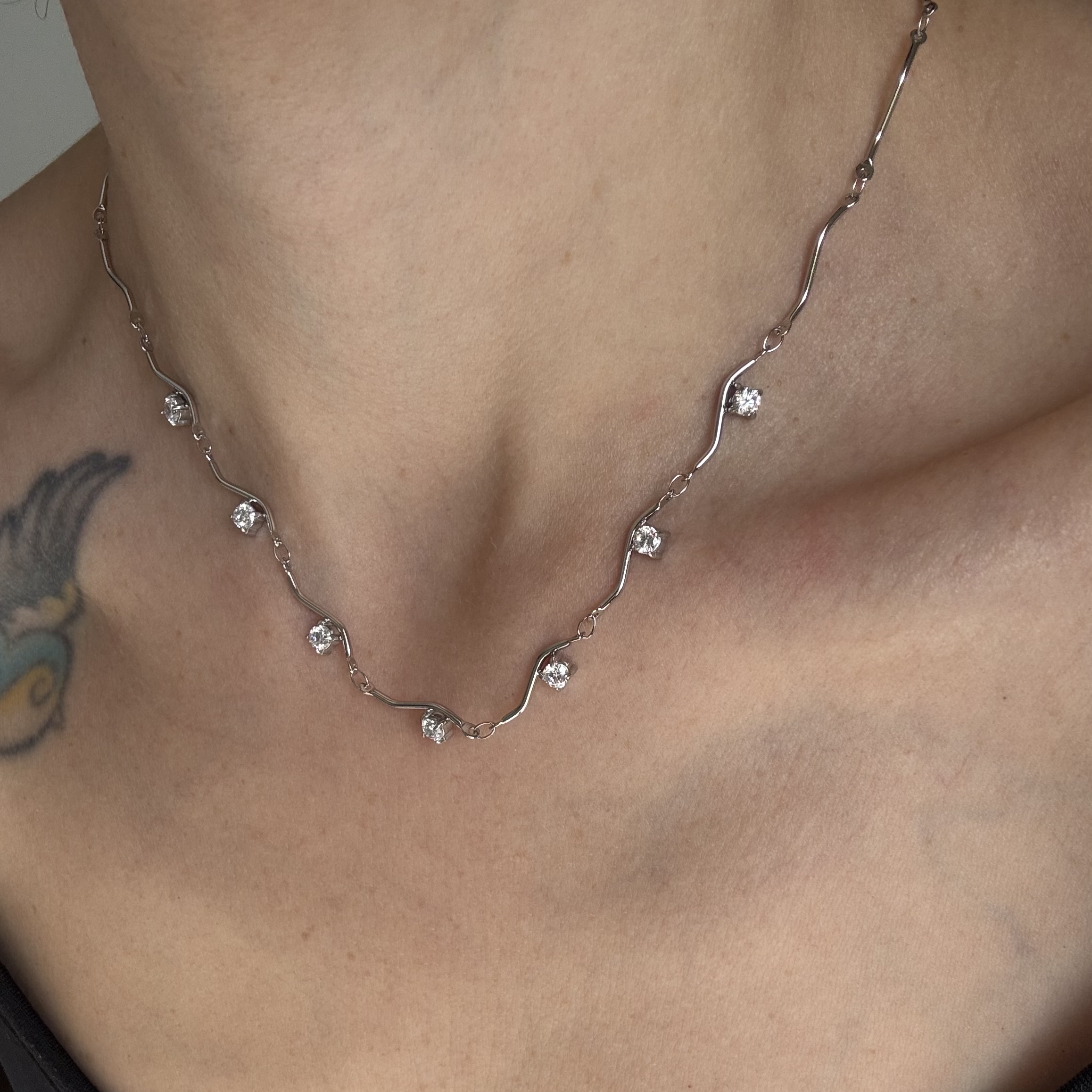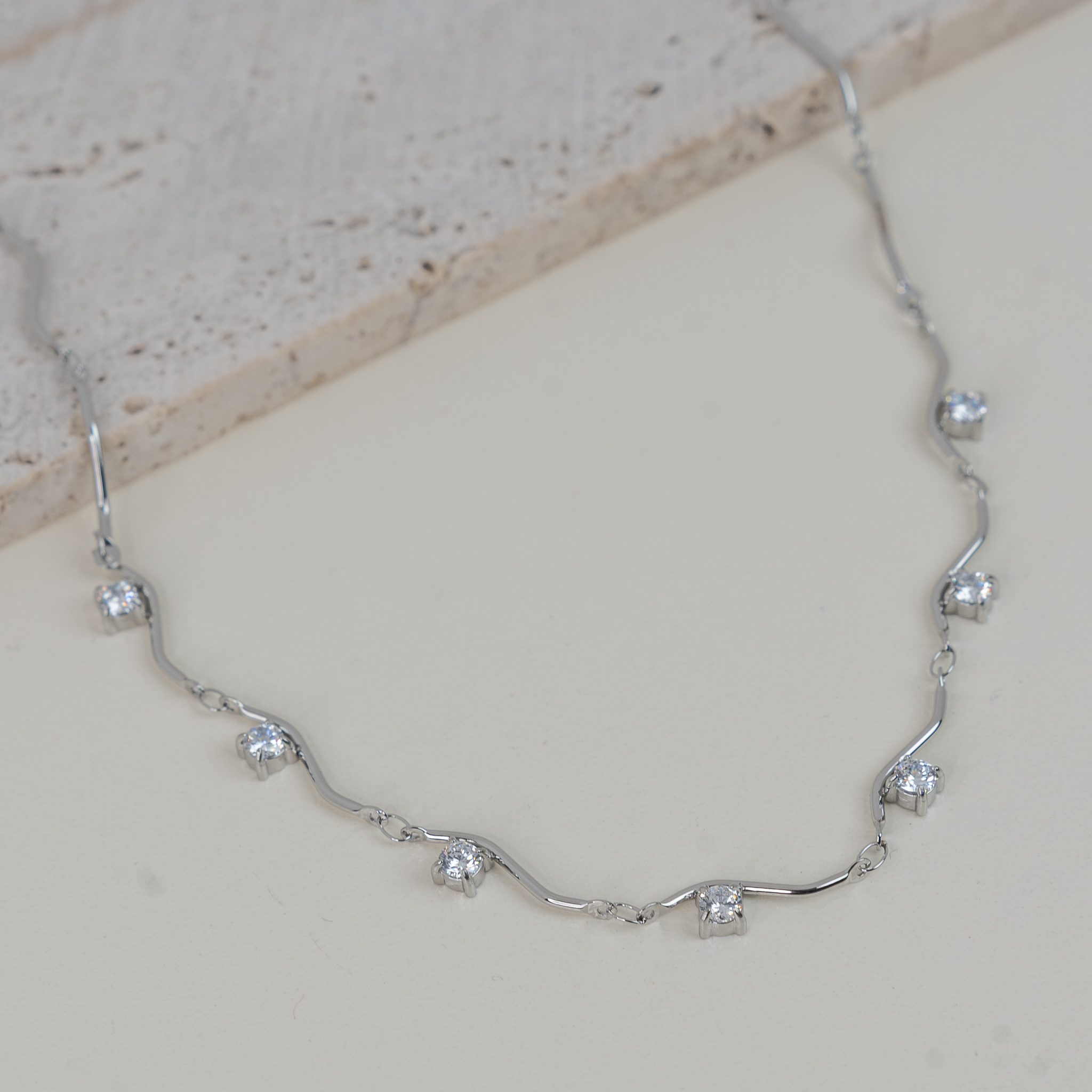 Brilliant Silver Κολιέ με ατσάλινη αλυσίδα και λευκά ζιργκόν