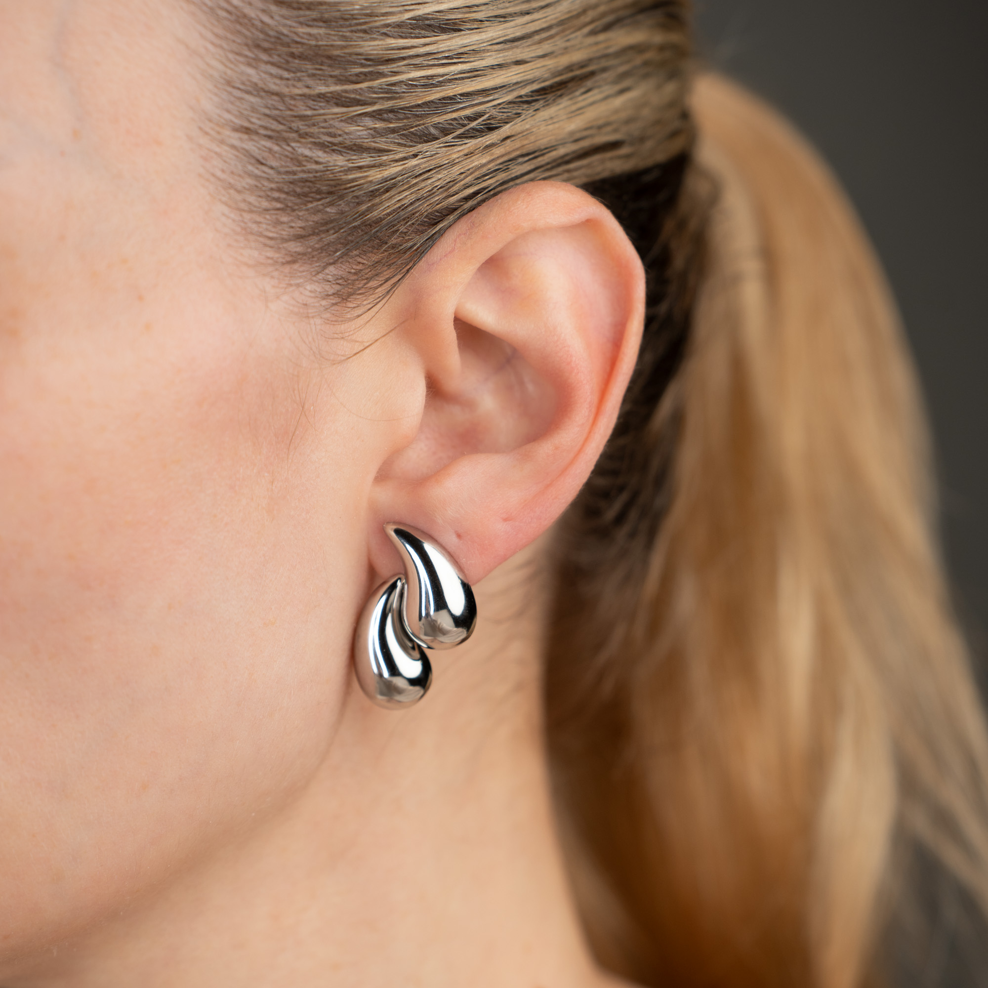 Cassandra Silver ατσάλινα σκουλαρίκια με διπλό δάκρυ