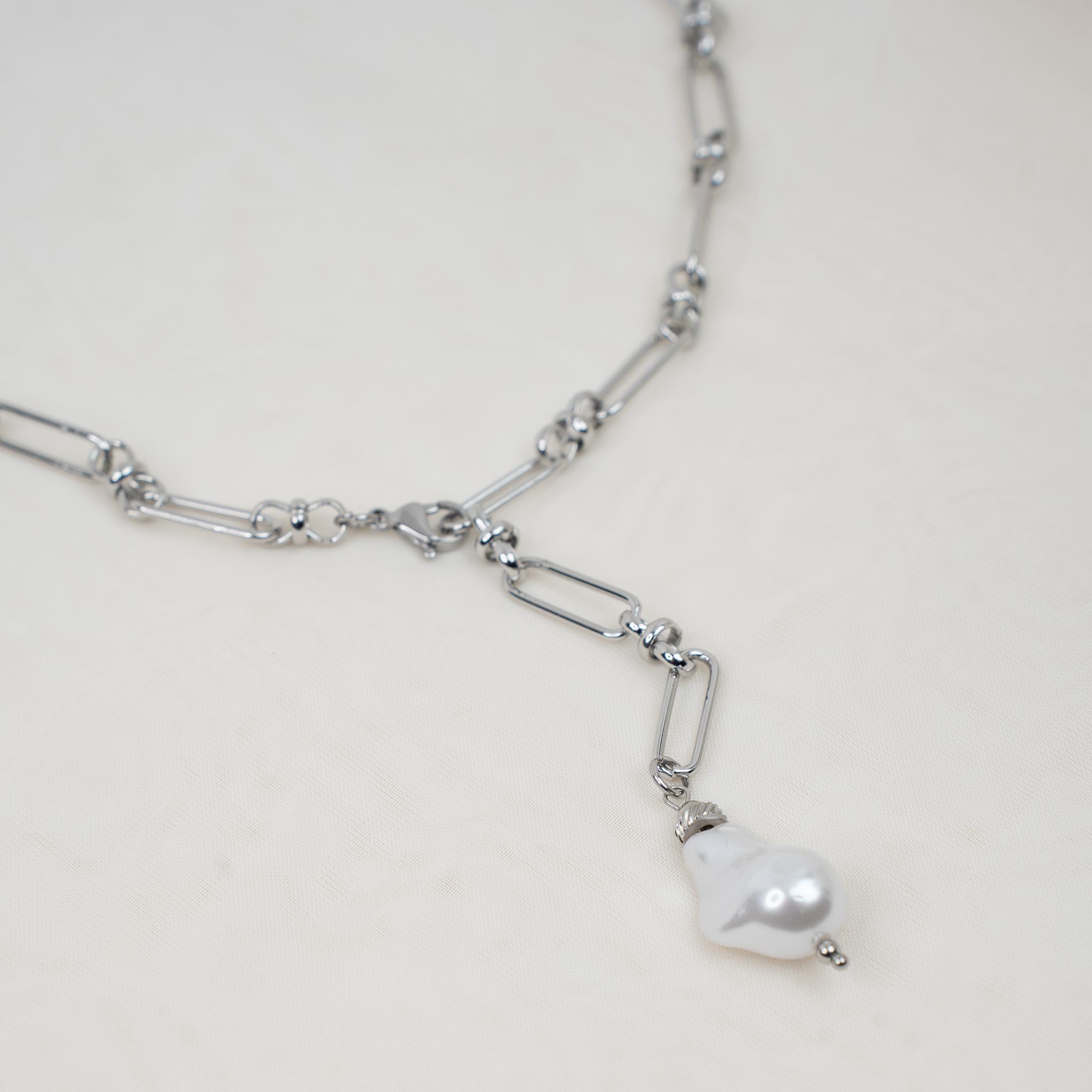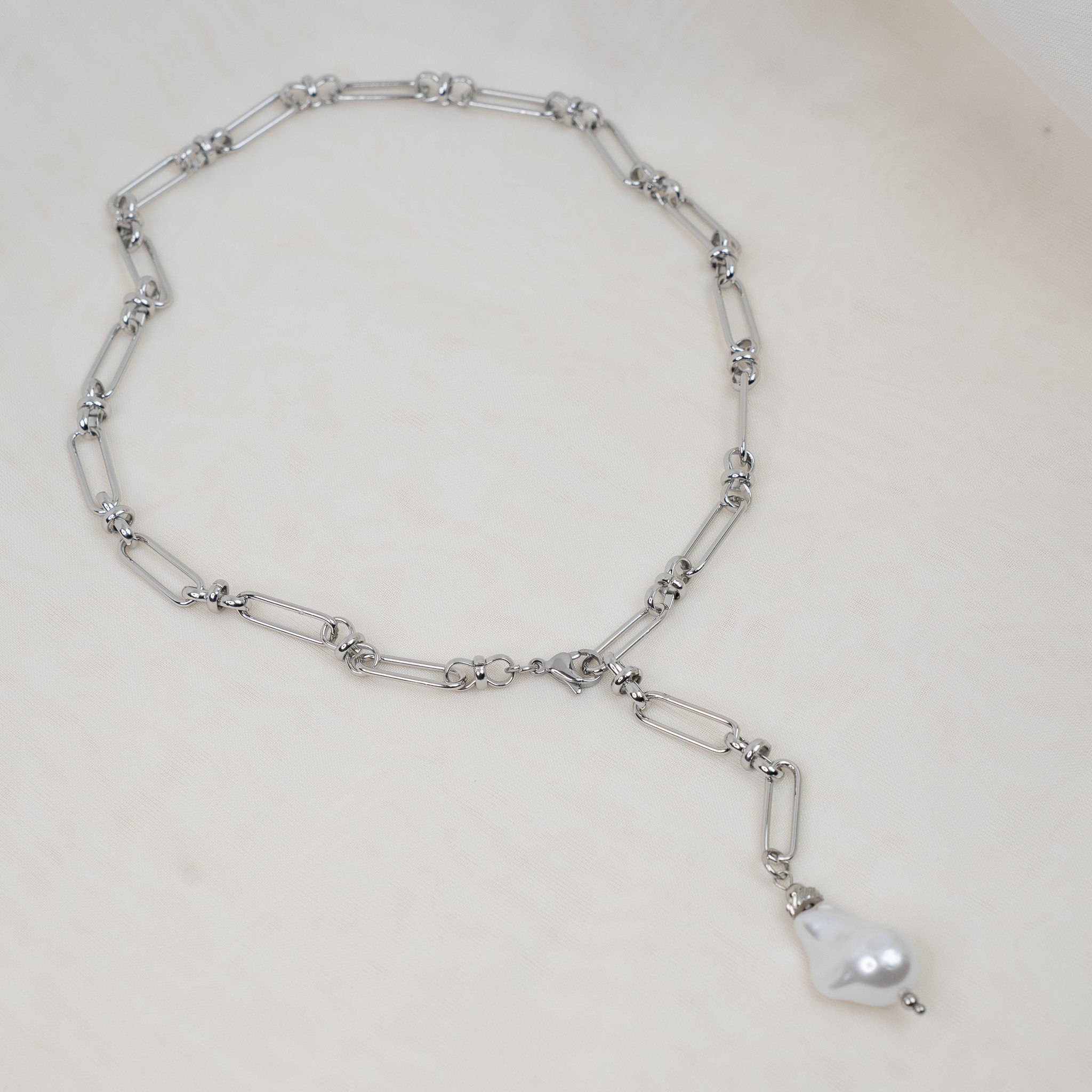 Colette Silver Ατσάλινο κολιέ με αλυσίδα και κρεμαστή ακανόνιστη πέρλα