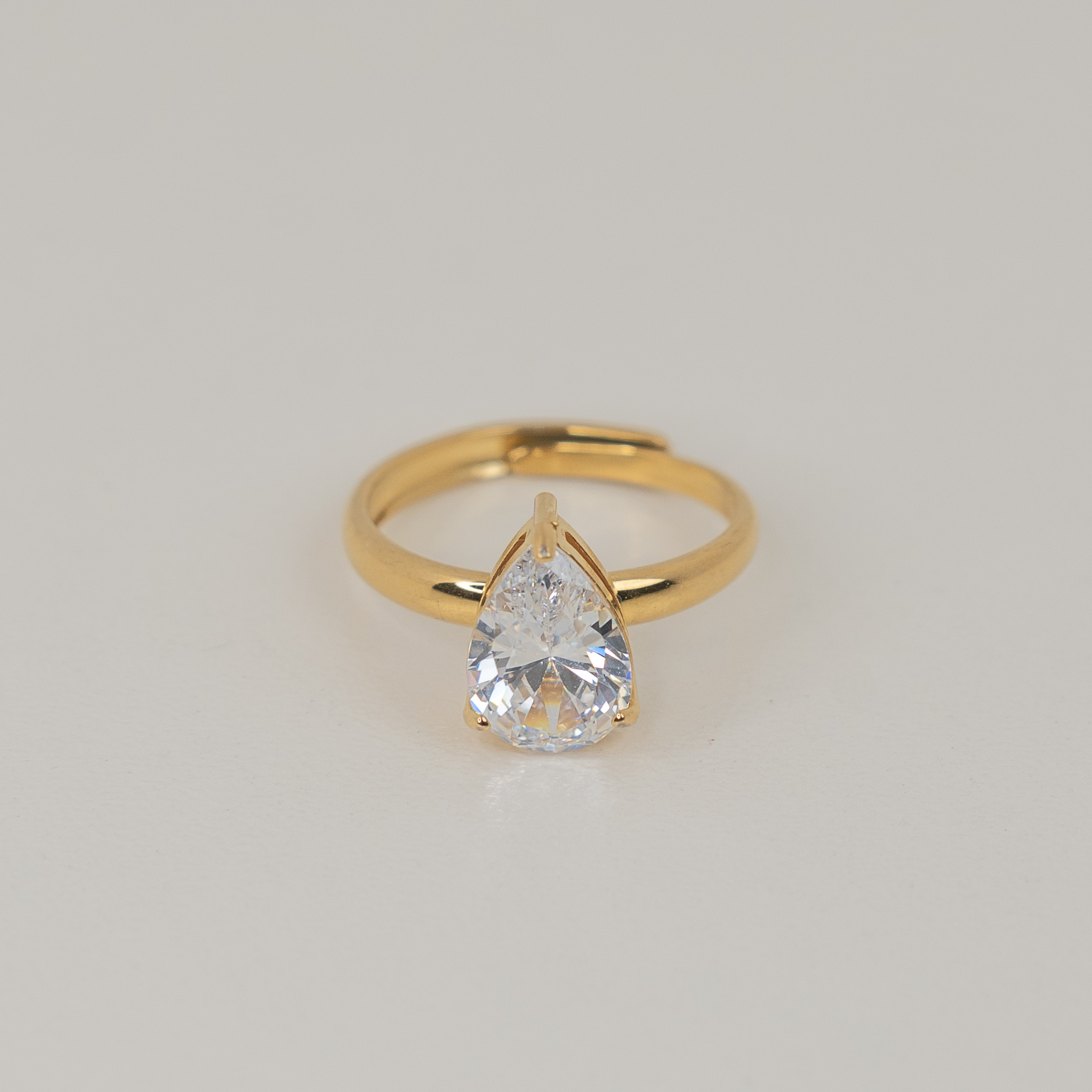 Étoile Gold Ατσάλινο δαχτυλίδι μονόπετρο με ζιργκόν δάκρυ