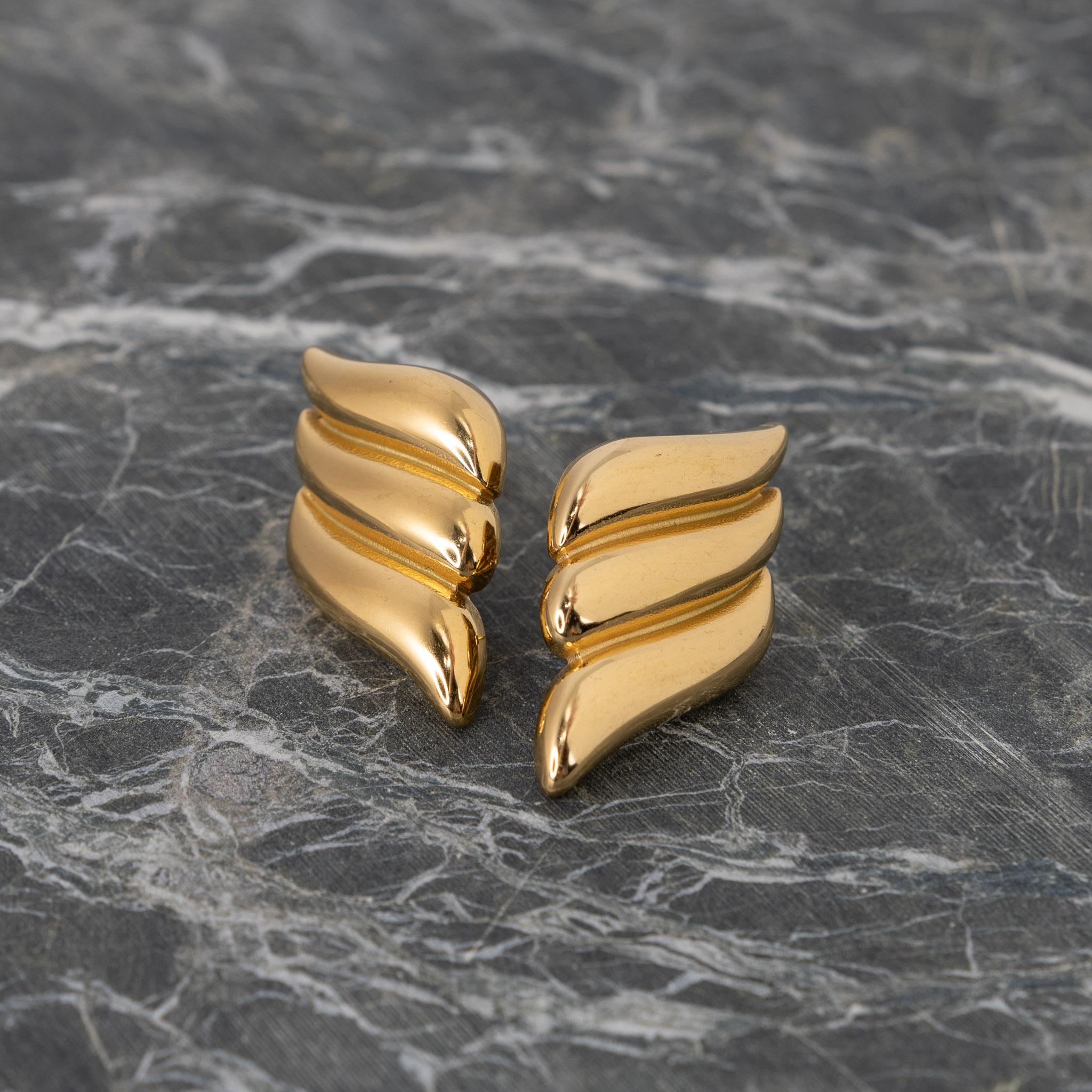 Flare Gold Ατσάλινα σκουλαρίκια με κυματιστό σχέδιο