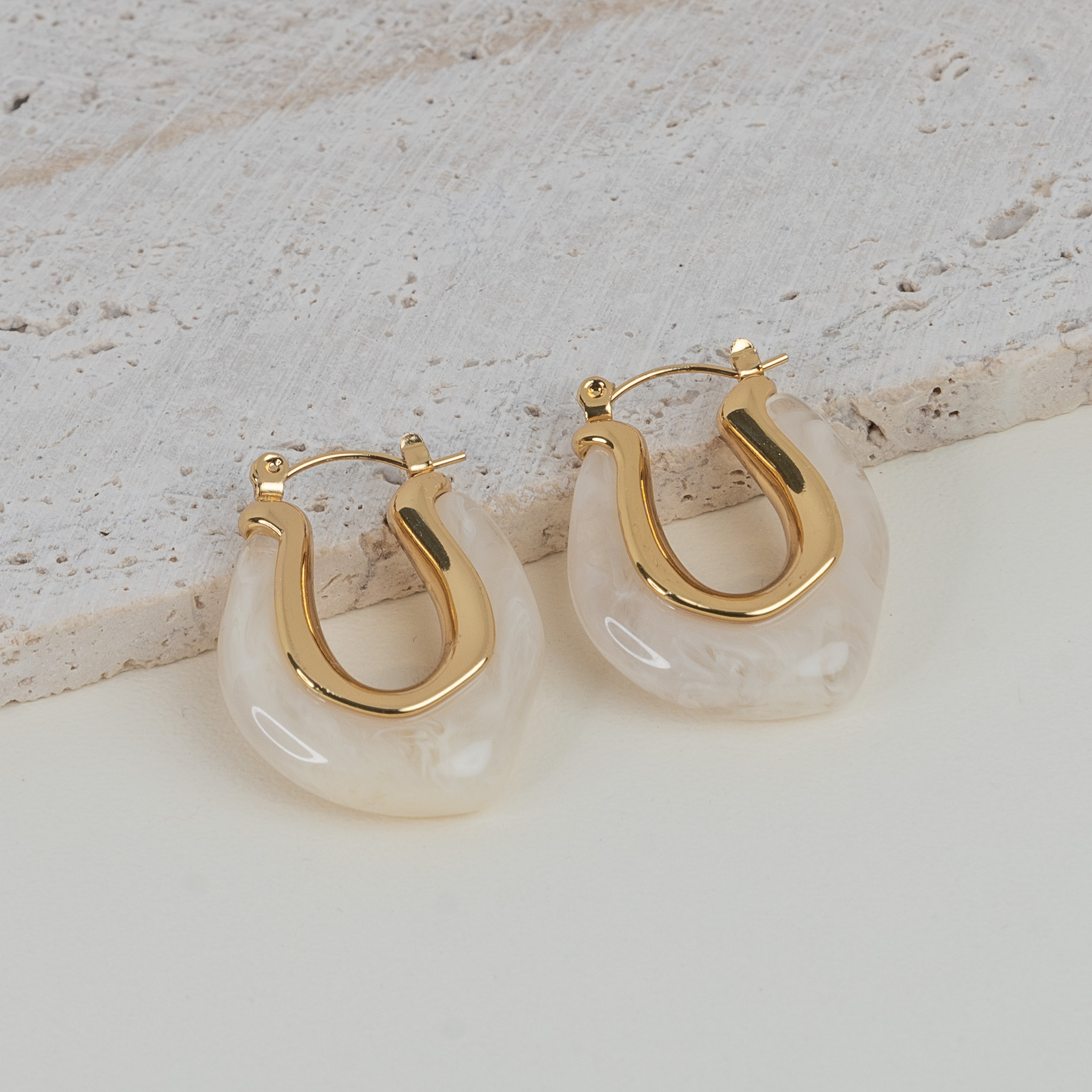 Inès Ice Gold Ατσάλινα σκουλαρίκια με πέτρα σε λευκή/κρεμ απόχρωση