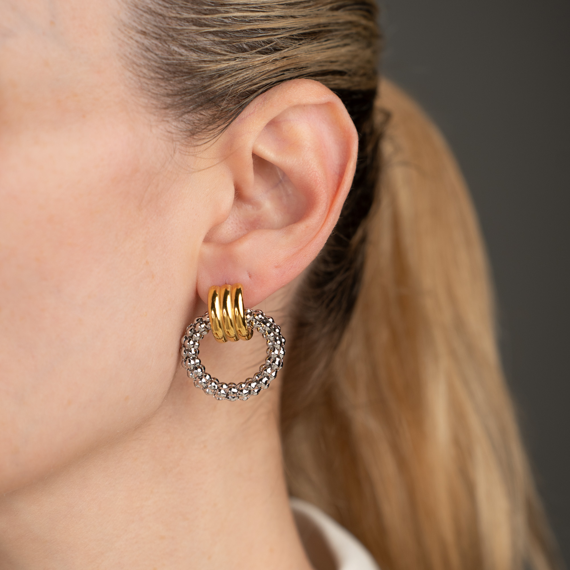 Mirage Δίχρωμα Σκουλαρίκια με Ανάγλυφο Σχέδιο