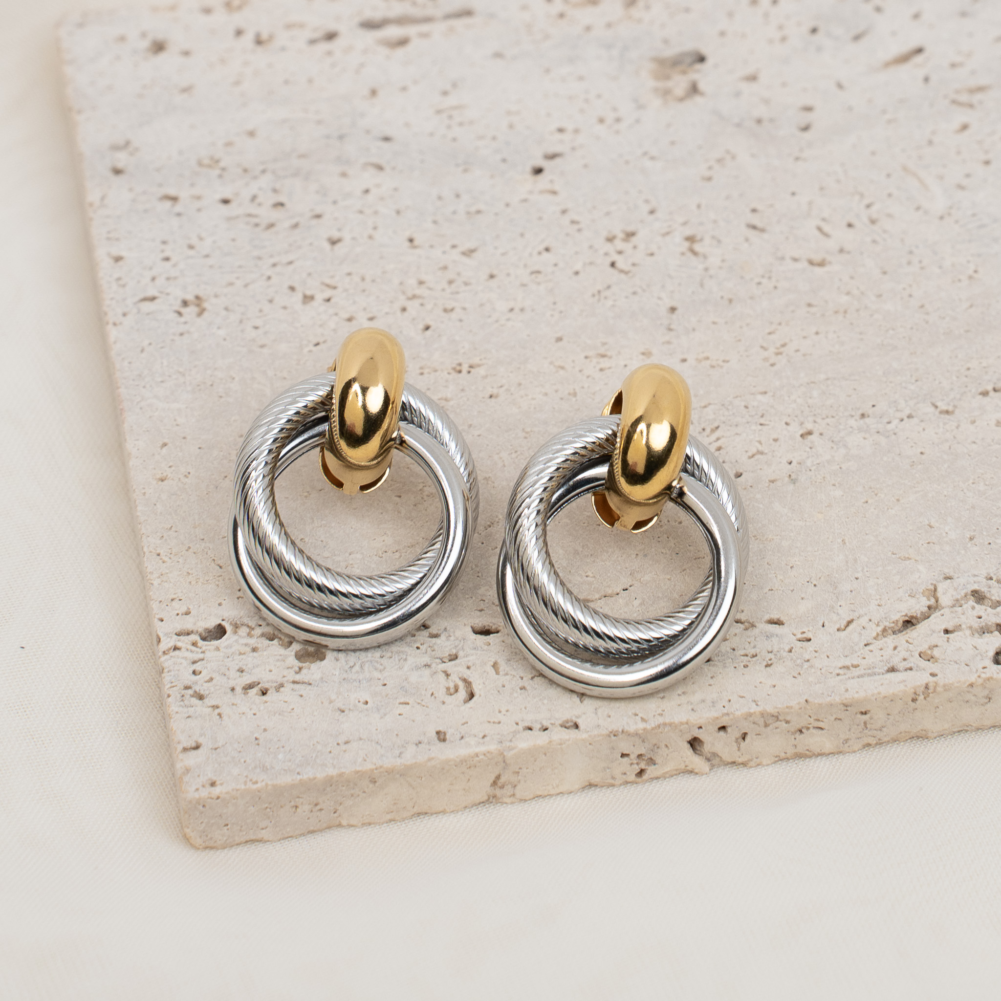 Noor δίχρωμα ατσάλινα σκουλαρίκια με ανάγλυφο σχέδιο