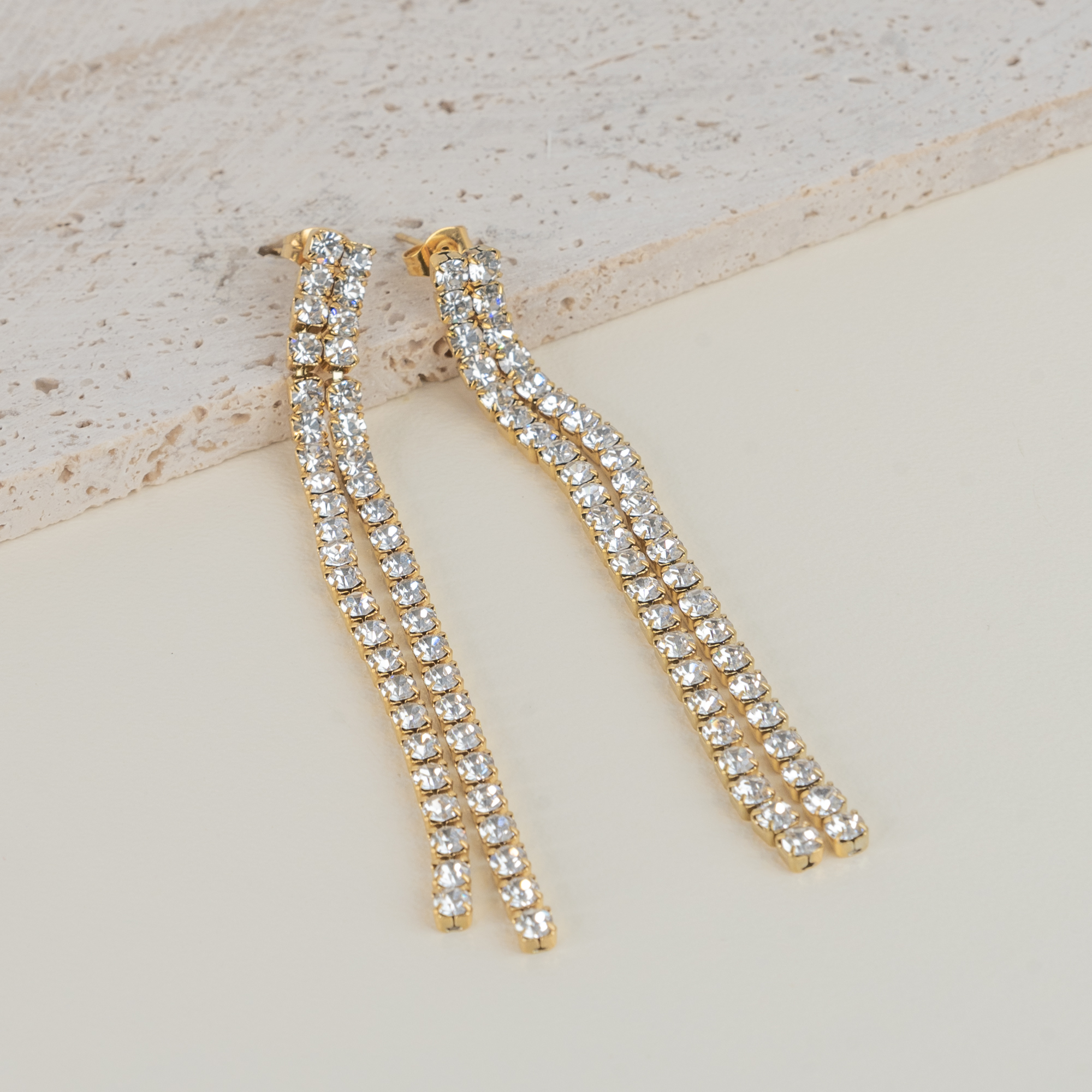Notte White Gold Ατσάλινα σκουλαρίκια κρεμαστά με λευκά ζιργκόν