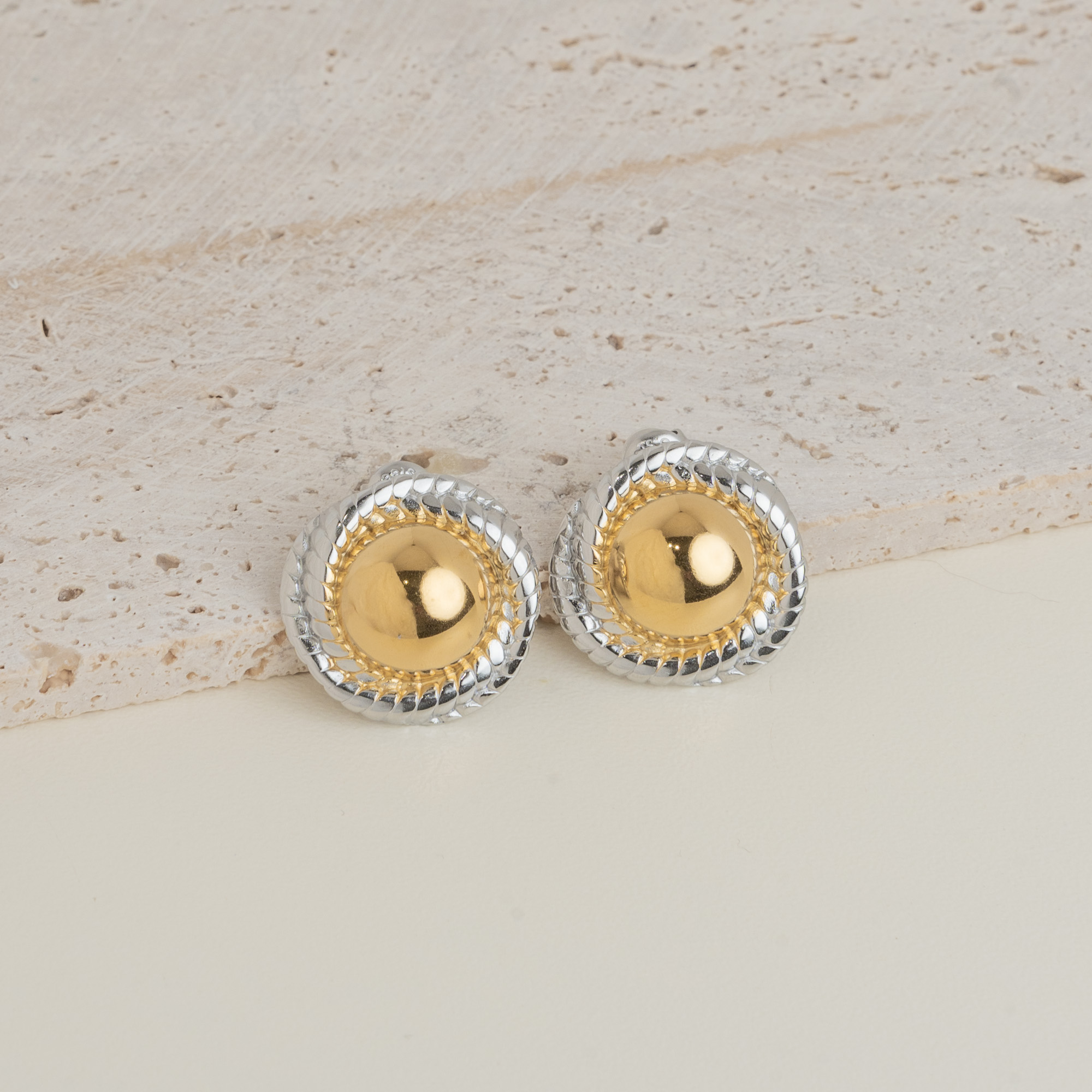 Olyra Δίχρωμα ατσάλινα σκουλαρίκια στρογγυλά με ανάγλυφο περίγραμμα