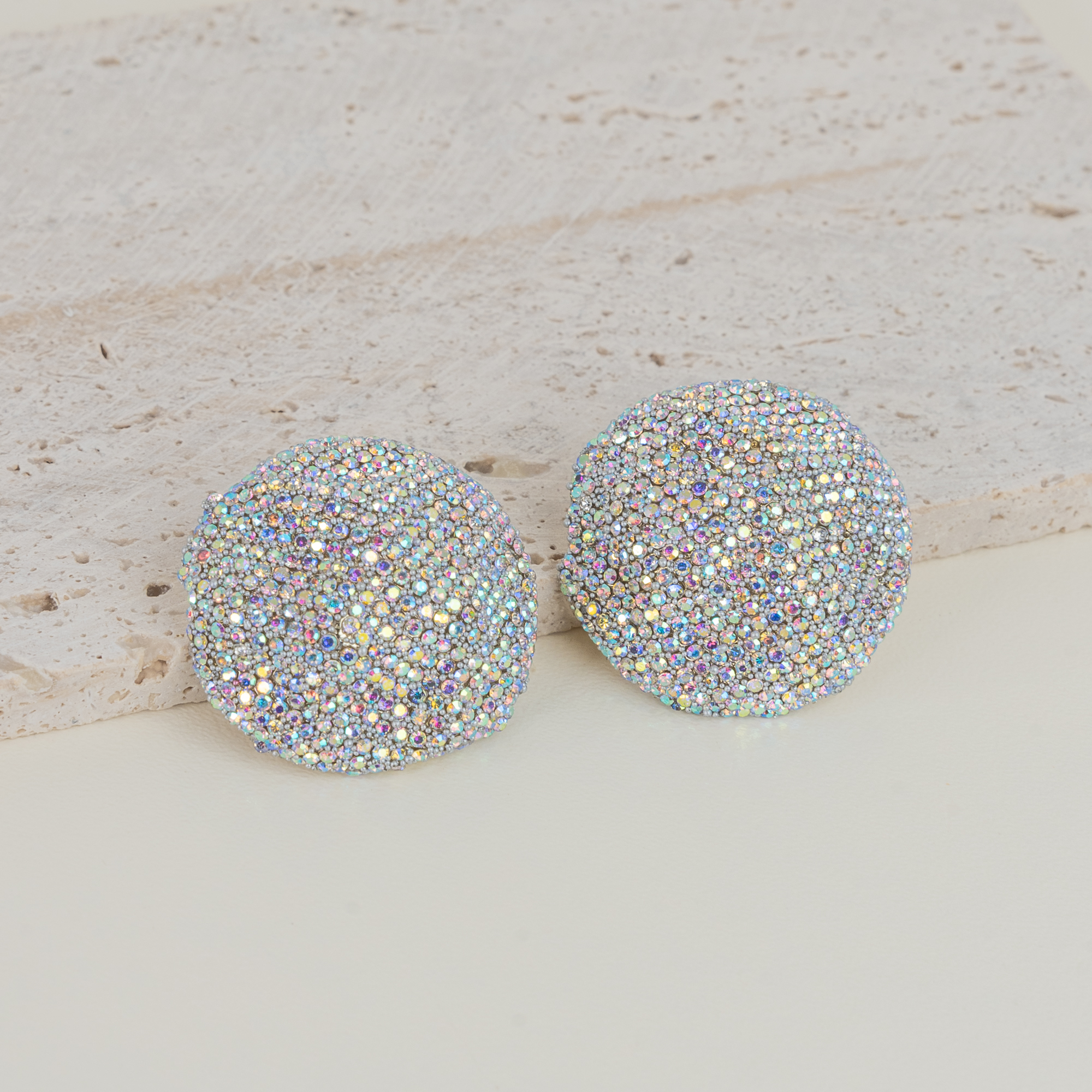 Prism White Gold Ατσάλινα Στρογγυλά statement σκουλαρίκια, καλυμμένα εξολοκλήρου με λαμπερά κρυσταλλάκια σε ιριδίζον φινίρισμα
