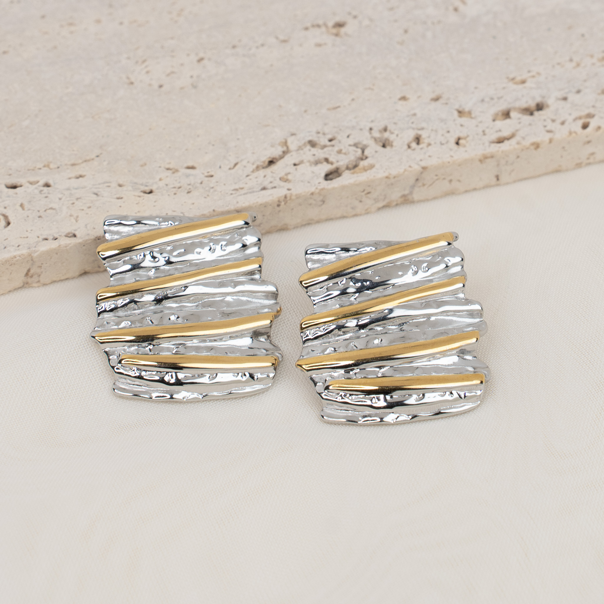 Ripple Δίχρωμα Σκουλαρίκια με Ανάγλυφο Σχέδιο