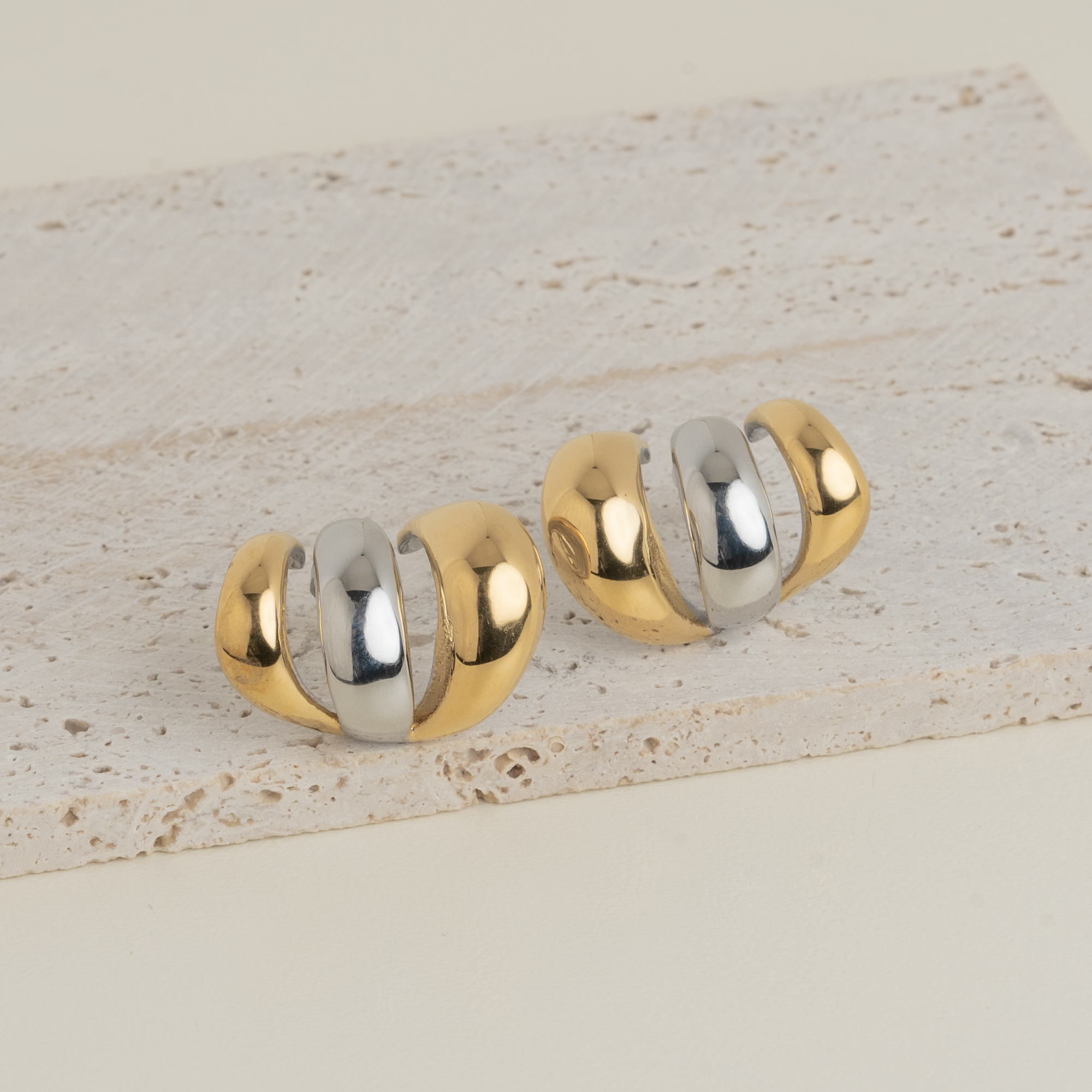 Silvana Δίχρωμα ατσάλινα σκουλαρίκια τριπλοί κρίκοι