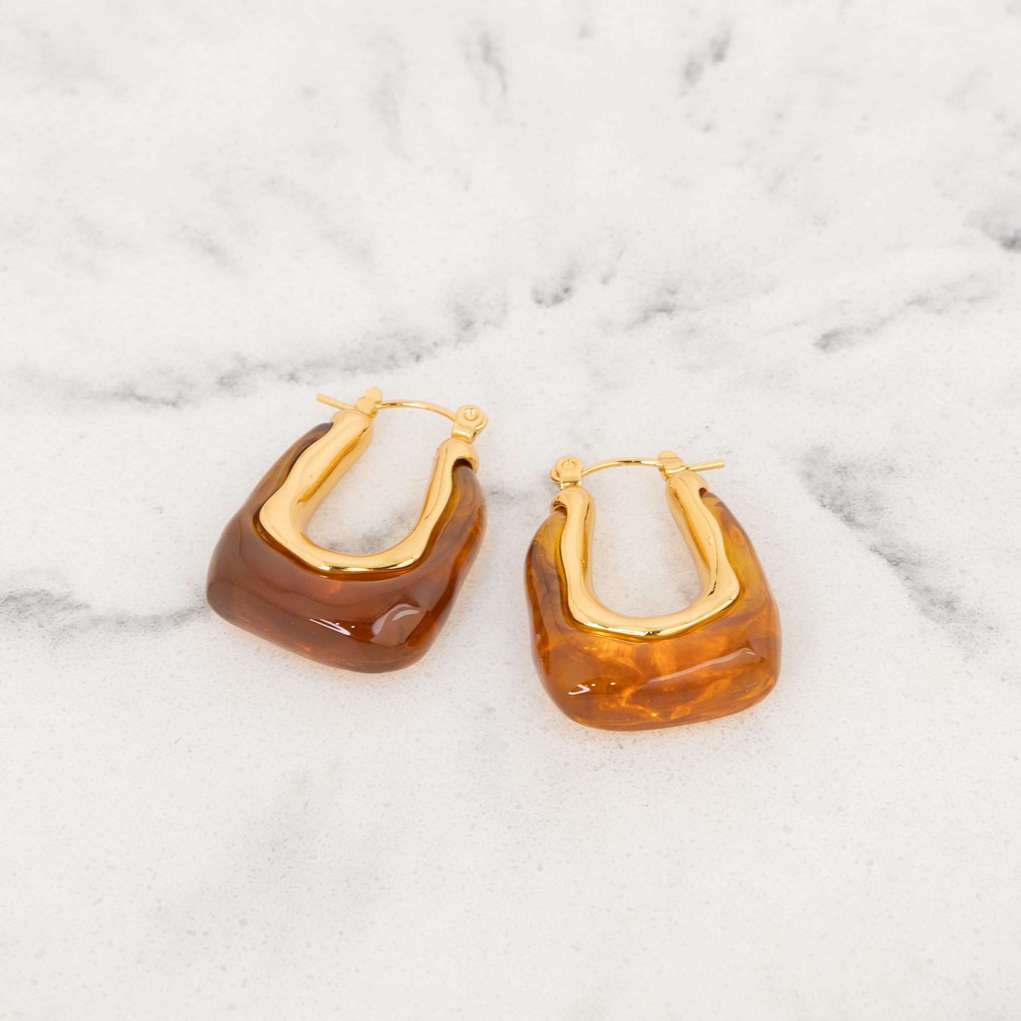 Solace Honey Gold Ατσάλινα σκουλαρίκια με πέτρα σε μελί απόχρωση