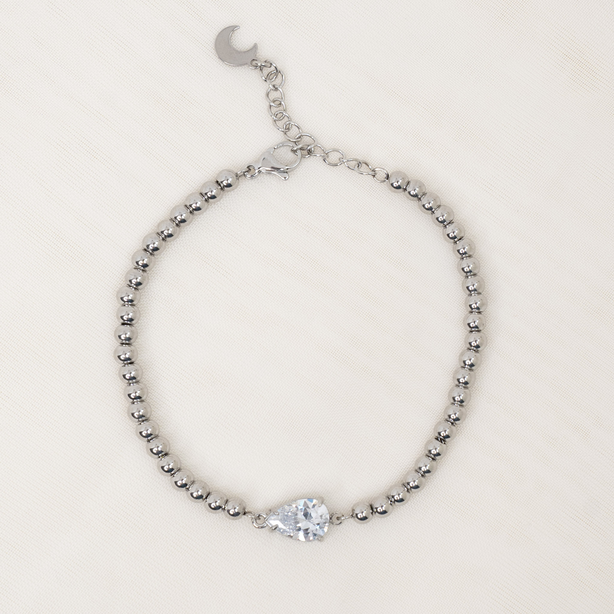 Teardrop Silver Ατσάλινο βραχιόλι αλυσίδα με μπίλιες και κεντρικό ζιργκόν δάκρυ