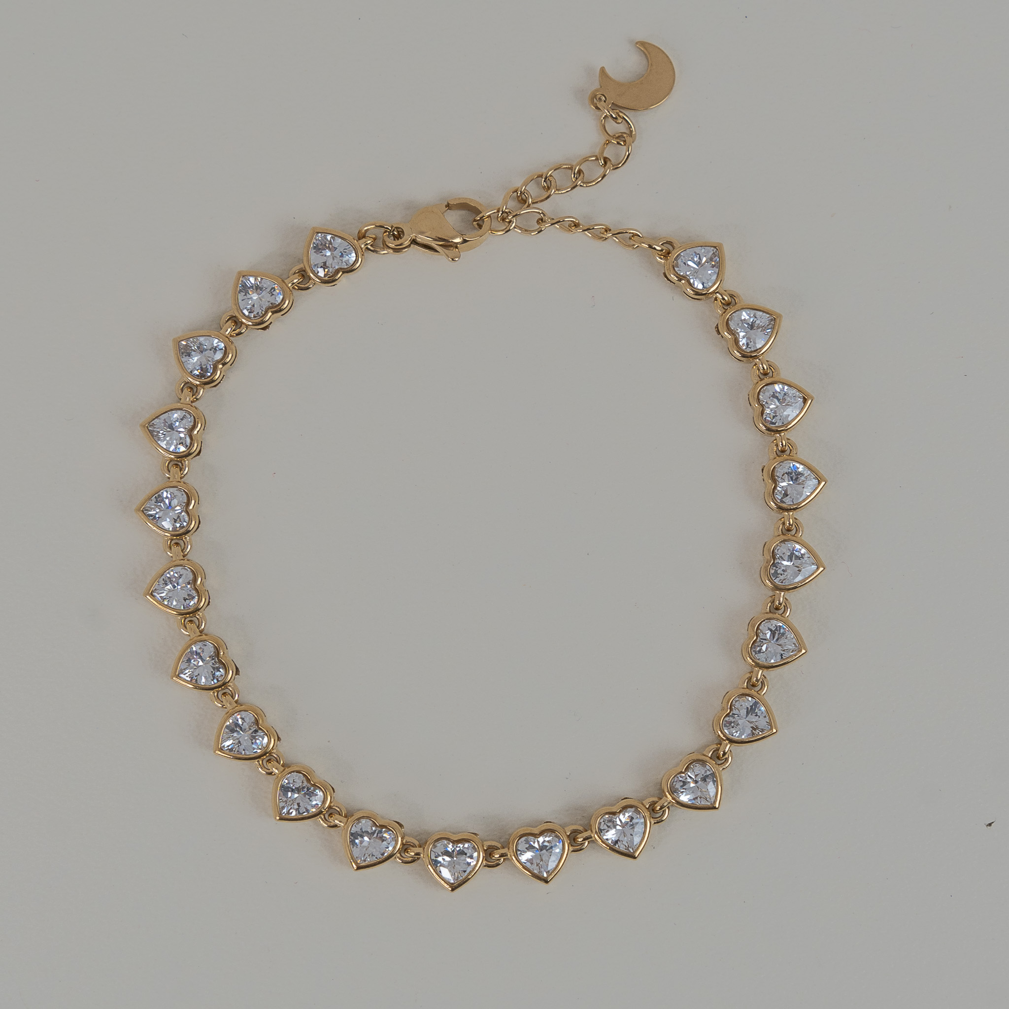 Tesoro Gold Ατσάλινο βραχιόλι αλυσίδα με λευκά ζιργκόν σε σχήμα καρδιάς