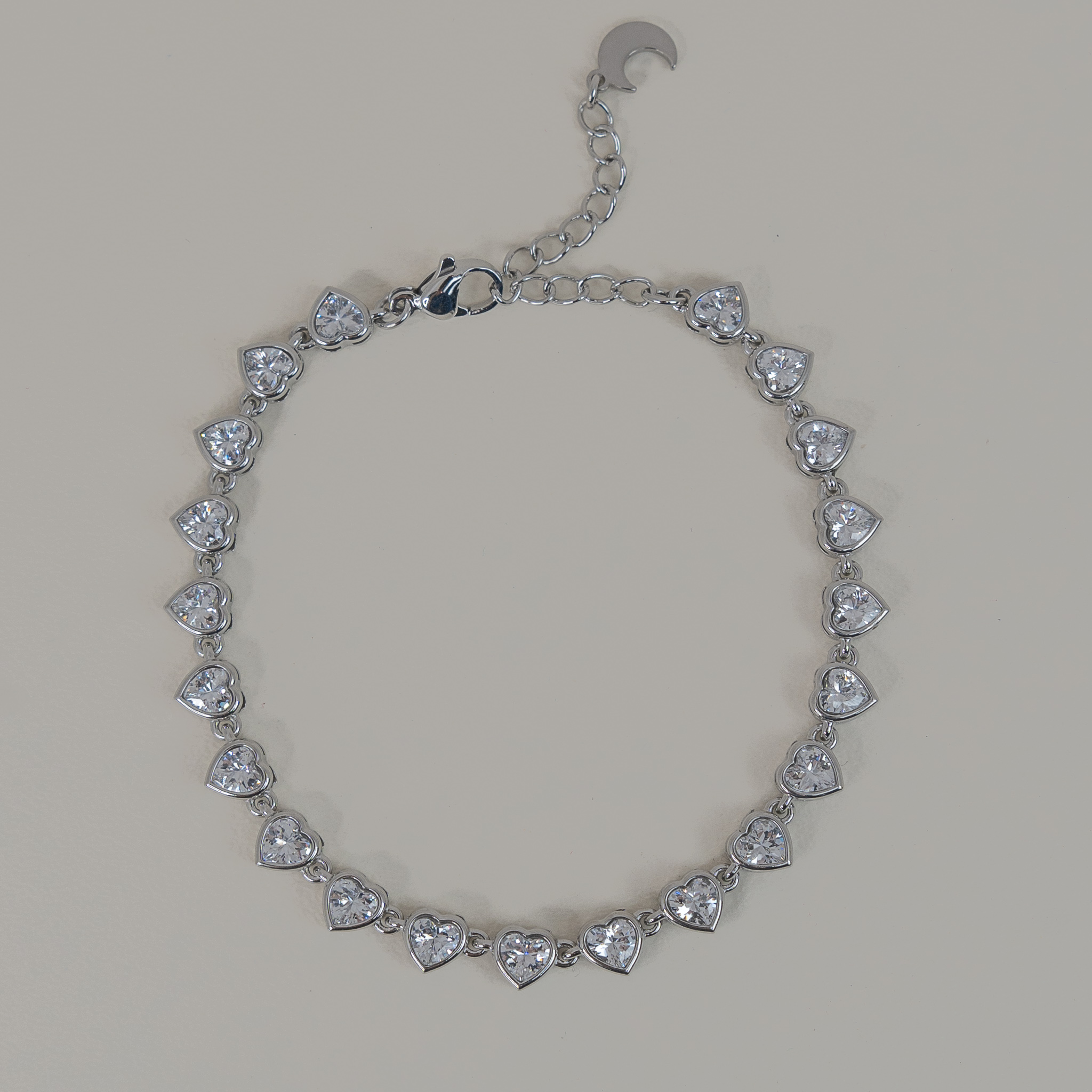 Tesoro Silver Ατσάλινο βραχιόλι αλυσίδα με λευκά ζιργκόν σε σχήμα καρδιάς