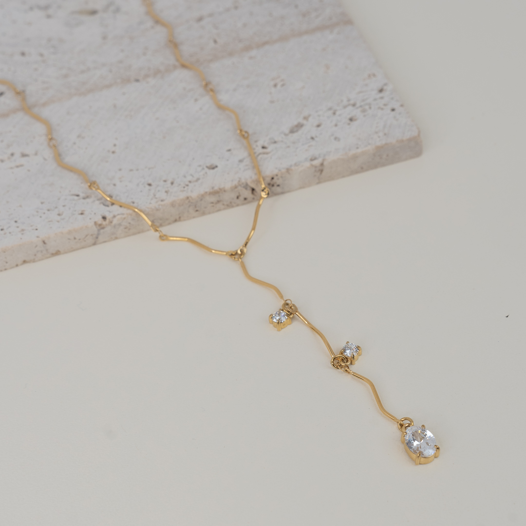/ Wavelet Gold Κολιέ με Ζιργκόν